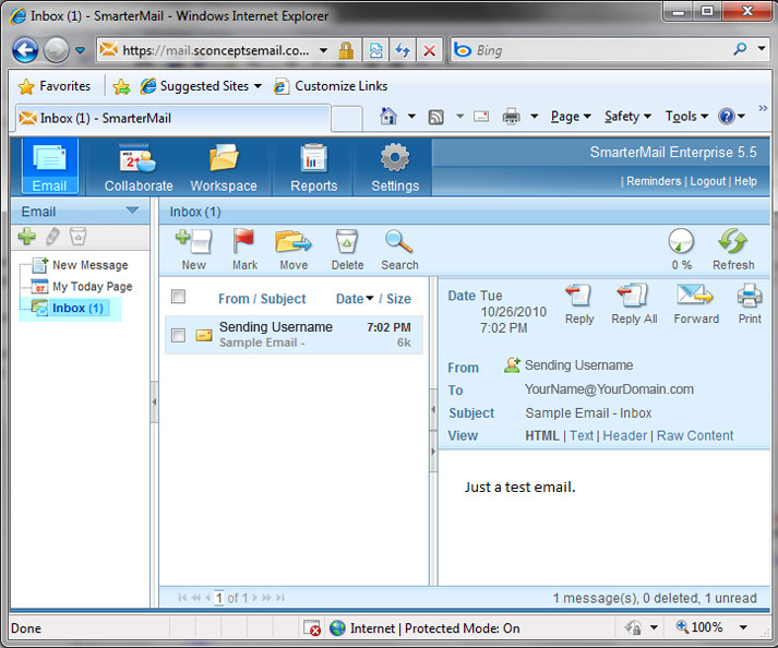 - Near the top menu, you will see options to create a "New" email messages, along with options to "Reply", "Delete" etc...